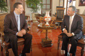 Para discutir los alcances del proyecto, el secretario general de la LMD, ingeniero Johnny Jones, visitó este lunes en el Palacio Consistorial al alcalde Roberto Salcedo, también presidente de la Mancomunidad de Ayuntamientos del Gran Santo Domingo, con quien sostuvo un prolongado intercambio de opiniones y de identificación de los proyectos en los que la Liga podría intervenir en ayuda a los cabildos.