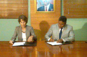 Para ello la jefa de la misión de la UE en el país, Irene Horejs, firmó dos acuerdo de financiación con el ordenador nacional de los Fondos Europeos para el Desarrollo, el ministro Domingo Jiménez.