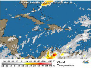 SANTO DOMINGO, República Dominicana.- La Oficina Nacional de Meteorología (Onamet) informó este martes que un nuevo sistema frontal, que se ubica sobre el canal del Viento, comenzará a incidir esta tarde sobre el territorio dominicano.