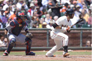El guardabosques dominicano Melky Cabrera empató marca en su carrera con cuatro imparables, incluyendo un vuelacercas, y anotó tres veces, para darle a los Gigantes de San Francisco una victoria por 3-2 contra los Marlins de Miami.