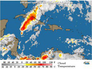 El área de baja presión localizada entre Las Bahamas y La Florida se presenta mejor organizada y tiene probabilidad alta (un 70 por ciento), de que se convierta en un ciclón tropical o subtropical durante las próximas 48 horas, se mueve hacia el noreste. Este sistema no representa peligro para la República Dominicana.