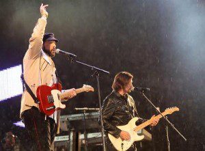 SANTO DOMINGO, República Dominicana.- Juan Luis Guerra repartió su música sobre los más de 40,000 empapados incondicionales que gozaron hasta más no poder de su concierto ofrecido bajo el más copioso aguacero del año caído sobre Santo Domingo y donde sorpresas como Juanes y Romeo hicieron la noche inolvidable.