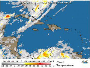 Indicó que las condiciones del tiempo para el área de pronostico continuarán con pocos cambios en la actividad de lluvias, no obstante, durante el transcurso de la tarde y primeras horas de la noche podrían presentarse chubascos de corta duración con aisladas tronadas, especialmente sobre los poblados de las regiones sureste, suroeste, cordillera Central y zona fronteriza, producto de la interacción de los efectos locales de convección y orografía con la humedad originada por el viento predominante del Este/ sureste.
