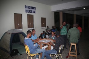 Varios corchones fueron desplegados frente a la Oficina de Cajas del CURNE y una pequeña “casa de campaña”, señal de que el área el área se encuentra ocupada y fuera de servicios.