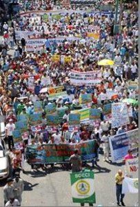 SANTO DOMINGO, República Dominicana.- La Federación de Padres con Niños en Colegios Privados y Escuelas Públicas (FEDEPADRES) y más de 50 grupos comunitarios marcharón este domingo hasta el Palacio Nacional en rechazo de la explotación minera en Loma de Miranda, en Cotui.