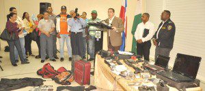 Dijo que entre los detenidos figuran los ex alistados policiales Francisco Javier Asencio Medina, Leoris Peña Santos y Alexis Antonio Méndez Mañón. También Pedro Luis Segura Méndez, Julio Alexander Belliard Merán (a) Alex, Francisco Alberto María Castillo (a) El Trabero, Ricardo González Diloné, Oliver Ogando Gómez y los haitianos Francois Gerald y Desil Riquel.