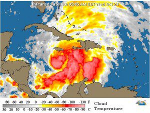 En su boletín de las 15.00 GMT de hoy, el Centro Nacional de Huracanes (CNH) de EE.UU. indicó que el huracán de categoría uno «Sandy» se encuentra a 100 kilómetros al sur de Kingston (Jamaica) y a 380 kilómetros al sur-suroeste de Guantánamo (Cuba).