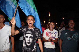“Llamamos a la rebeldía popular contra la corrupción y la impunidad; en rechazo al paquetazo de nuevos impuestos; por salud, seguridad alimenticia, viviendas, seguridad ciudadana y educación pública gratuita y de calidad hasta nivel universitario”, proclamó en alta voz el coordinador del Falpo.