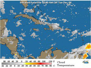 SANTO DOMINGO, República Dominicana.- Las condiciones del tiempo sobre el país siguen bajo los efectos del viento del noreste que se mantiene arrastrando humedad y una vaguada sobre las costas norte y noreste, así lo informó este martes la Oficina Nacional de Meteorología (Onamet).