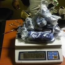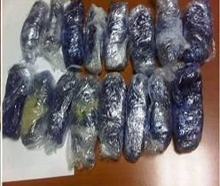 Les fueron ocupadas 16 porciones dentro de los tacos de varias zapatillas que pesaron un kilo 285 gramos, dijo este jueves el vocero de la DNCD, Roberto Lebrón