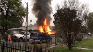 Los medios locales mostraron imágenes del fuego y los severos daños en la zona residencial que provocó la avioneta estrellada.