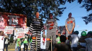 Con pancartas en manos y portando accesorios verdes, los manifestantes se van concentrando en el lugar para marchar contra la impunidad y la corrupción y reclamar a las autoridades una investigación para someter a los vinculados en el caso Odebrecht.