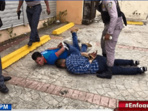 Explicó que al notar la presencia de los agentes policiales, los asaltantes trataron de escapar en la yipeta que supuestamente lanzaron contra la unidad patrullera, destruyéndole el frente.