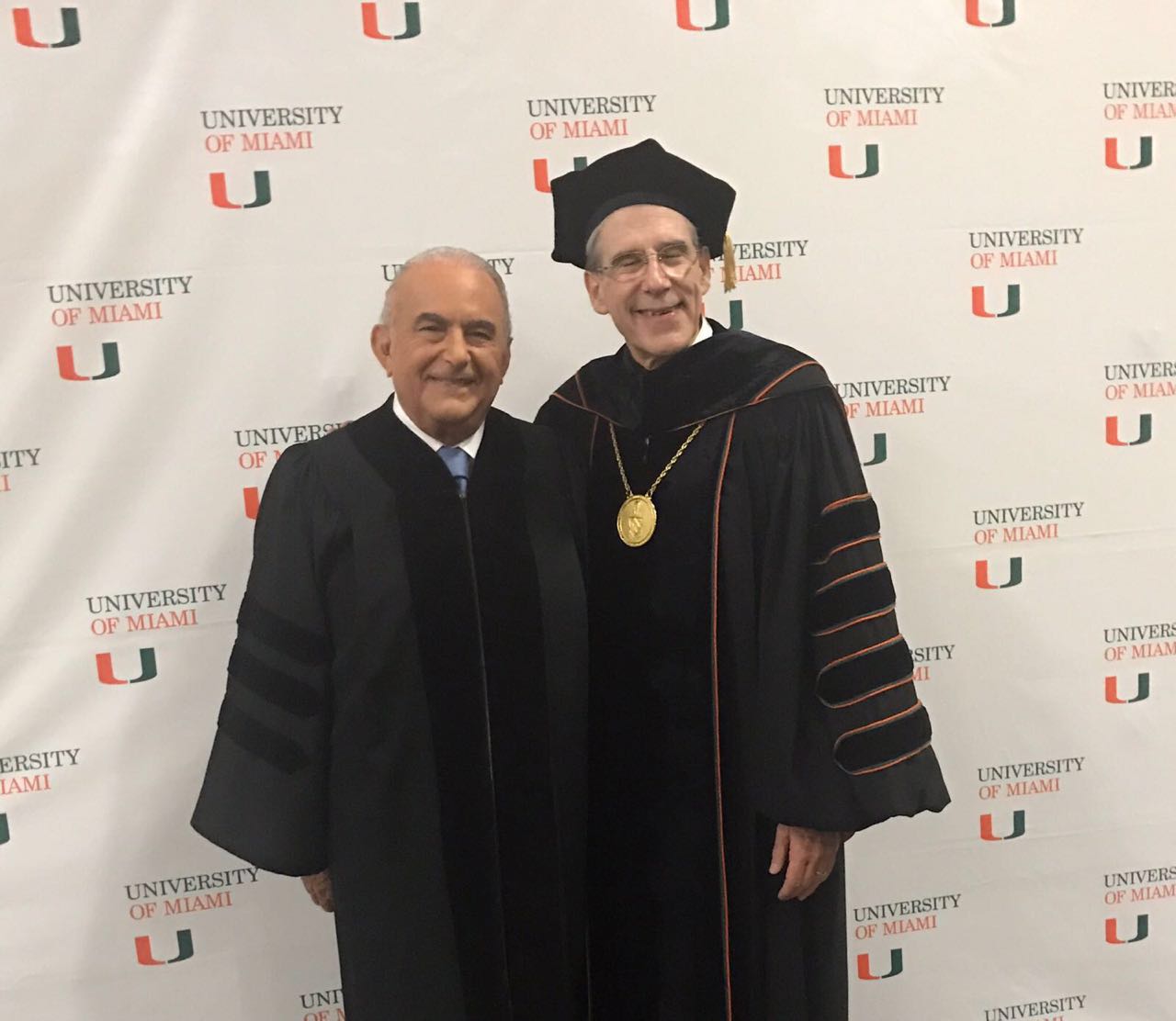 Miami, Florida (Mayo 12, 2017) – Gustavo A. Cisneros, Presidente de la Junta Directiva de Cisneros, fue investido este viernes como “Doctor Honoris Causa” en Humanidades por la Universidad de Miami; galardón que reconoce su trayectoria como empresario e impulsor de la región durante cerca de cinco décadas.