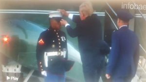 Trump notó la situación, aplaudió al oficial y se agachó para recoger el gorro, que colocó sobre la cabeza del marine, a quien palmeó con amabilidad. Sin embargo, instantes después, el viento volvió a volarlo.