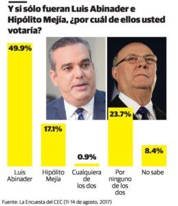 Abinader le ganaría a Mejia segun encuesta