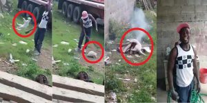 Lo peor de todo es que el hecho es grabado por un dominicano que lo incita a maltratar y golpear al animal, diciendole “dale al gato coño”.