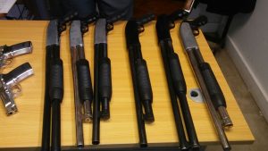 El informe policial detalla que las armas incautadas son cuatro escopetas calibre 12 milímetros marca Marverick con la misma serie 632100, y 2 escopetas del mismo calibre y marca, pero con la serie MV53301K.