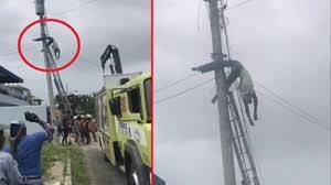 Intentando hacer una conexión eléctrica ilegal, recibió una descarga y quedó colgando.