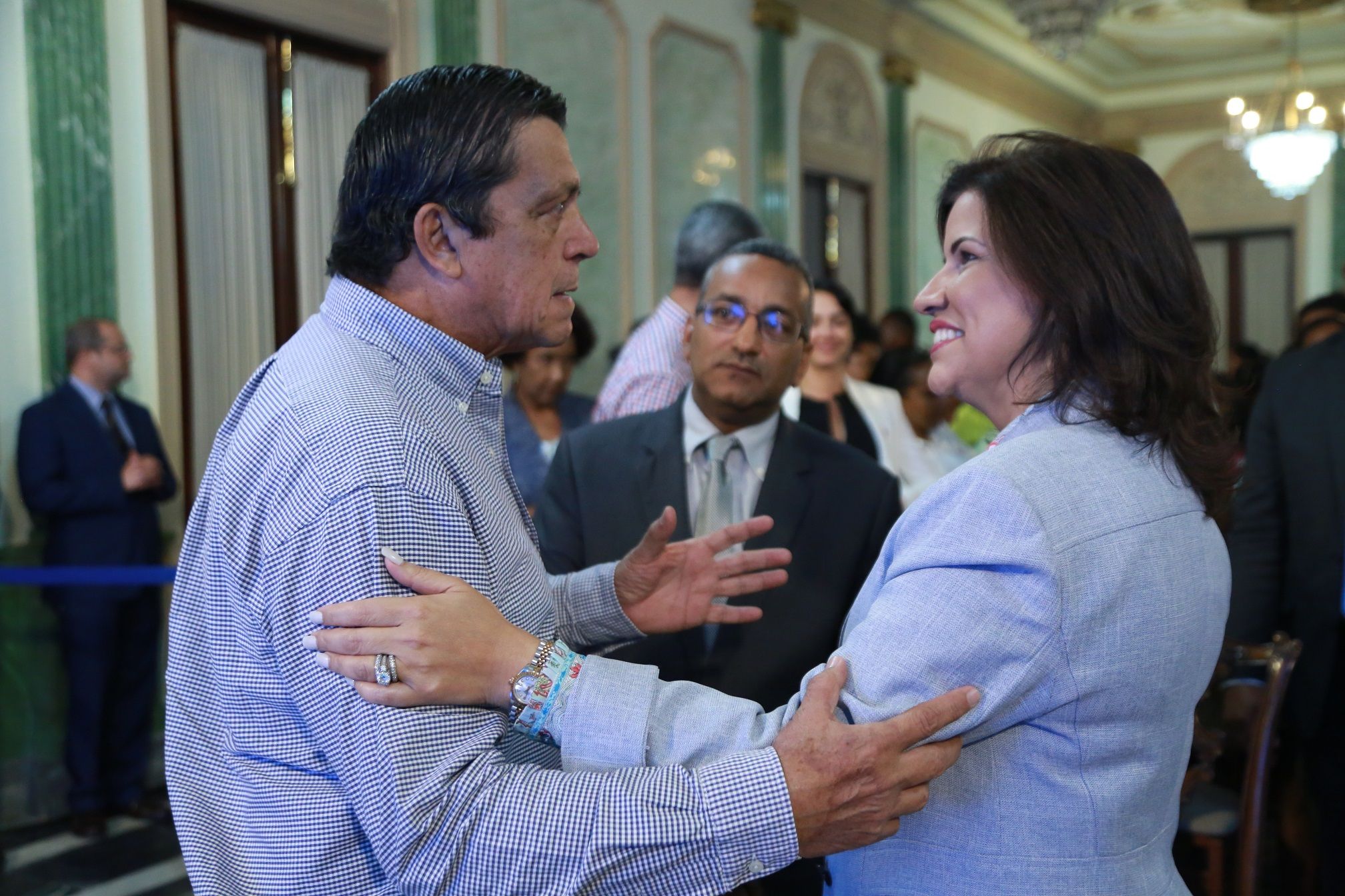 La vicepresidenta Margarita Cedeño conversa con el consultor de la Organización de las Naciones Unidas para la Alimentación y la Agricultura (FAO), Guillermo Murillo y con el oficial técnico de ese organismo internacional, Andrés Cedano.