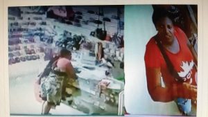 Según muestran las imágenes captadas por una cámara de seguridad del negocio, una de las dos mujeres entretuvo a la persona que atendía el lugar, mientras la otra, aparentemente embarazada y quien simuló estar cansada, se agachó, tomó el botín y se lo puso bajo el vestido y salió de prisa del lugar.