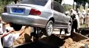 Shanghái (China).-La familia de un hombre de la provincia china de Hebei (norte), amante de los coches, cumplió su última voluntad y le dio sepultura con su propio vehículo como ataúd.