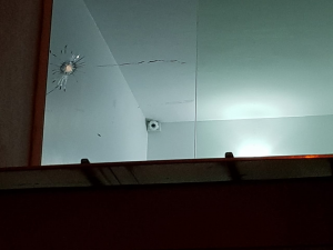 Los delincuentes al percatarse de la presencia de un agente de DIGESSET-AMET, emprendieron la huida sin lograr su objetivo, pero realizando un disparo al aire que impactó el cristal frontal del segundo nivel del edificio, sin consecuencias fatales pero con el propósito de evitar ser perseguidos