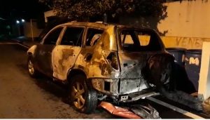 Santo Domingo RD.- El vehículo de la periodista Marivel Contreras quedó totalmente destruido tras incendiarse en la avenida Núñez de Cáceres.