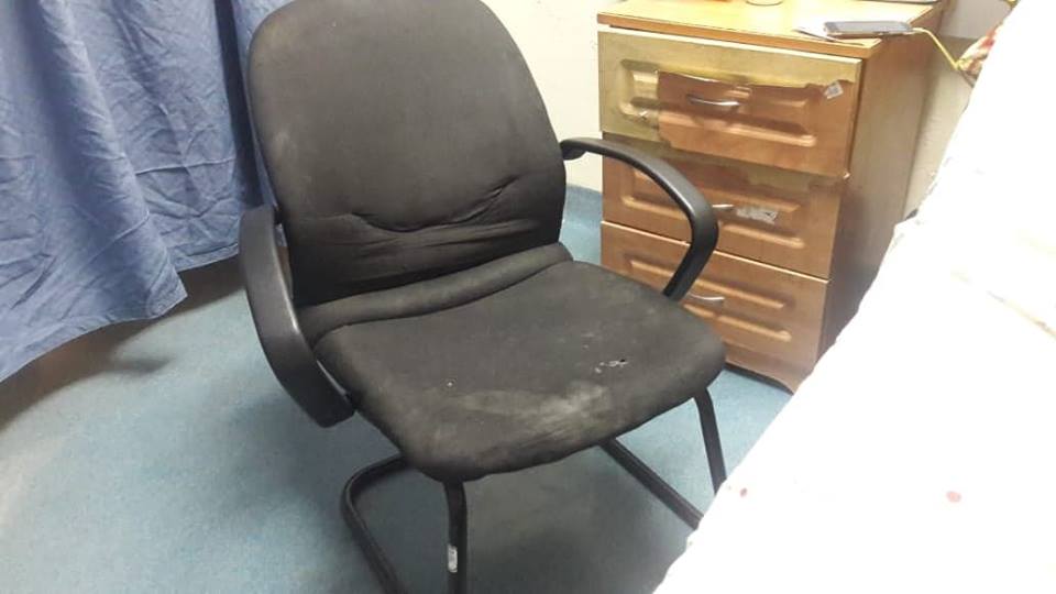 Indicó que en las mismas habitaciones se nota la falta de higiene. Este se puede comprobar en la sillas que hay en las habitaciones que son utilizadas por los que acompañan a los enfermos.