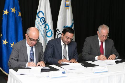 El acuerdo fue rubricado por el embajador Antonio Vargas Hernández, director general de cooperación multilateral y ordenador nacional de los fondos europeos; el embajador Gianluca Grippa, jefe de la delegación de la Unión Europea en el país, y el ingeniero Marius de León, director ejecutivo del CEI-RD.