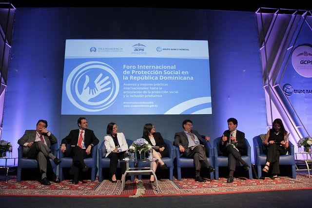 En el panel participaron el mexicano Rogelio Gómez Hermosillo, consultor internacional; Simone Cecchini, de la Comisión Económica para América Latina y el Caribe (CEPAL); y Luciana Mermet, representante residente adjunta del Programa de las Naciones Unidas para el Desarrollo (PNUD) en República Dominicana.