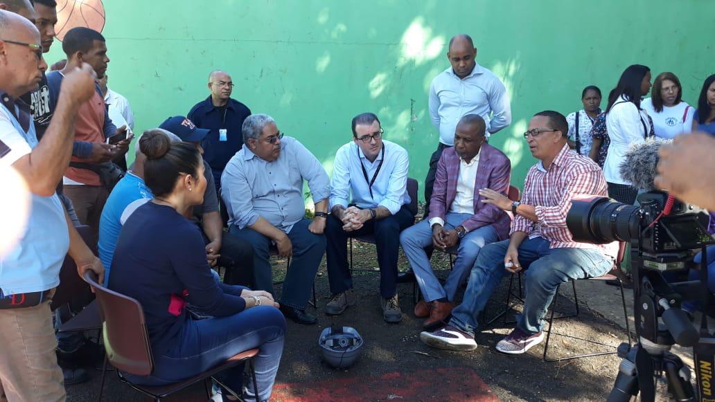 Álvaro Sousa, director de Asuntos Corporativos, encabezó la reunión acompañado del director del Servicio Nacional de Salud (SNS), Chanel Rosa, el director del Centro de Orientación e Investigación Integral (COIN), Francisco Santos, y Ana Daisy Eduardo, presidenta del Comité de Desarrollo de Villas Agrícolas, con quienes la empresa ha realizado una alianza para brindar toda la ayuda y soporte de lugar a los afectados.