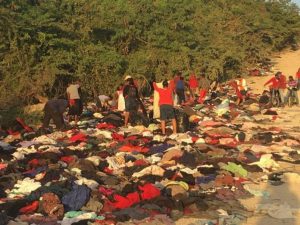 Un joven que se identificó como Wilkin relató que en ese momento la comunidad empezó a levantarse de sus camas, salieron e impidieron que la ropa fuera enterrada nuevamente, por lo que a los conductores de los camiones no les quedó otro recurso que depositar la mercancía donde ellos les pidieron.