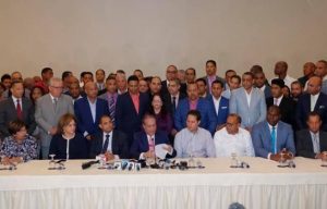 El dirigente político ofreció sus declaraciones públicas rodeado de su equipo político e importantes figuras del PLD, y personalidades de otras corrientes políticas e ideológicas.