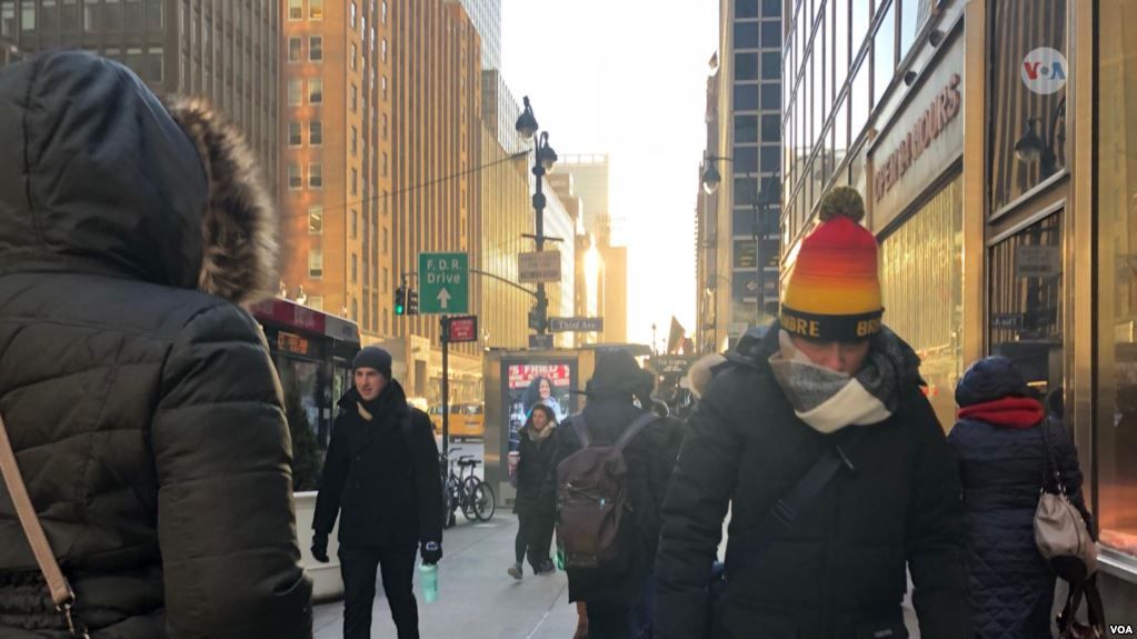 La ciudad de Nueva York también amaneció congelada el jueves. Se espera que las condiciones del clima cambien para el fin de semana.[Foto: Celia Mendoza, VOA].