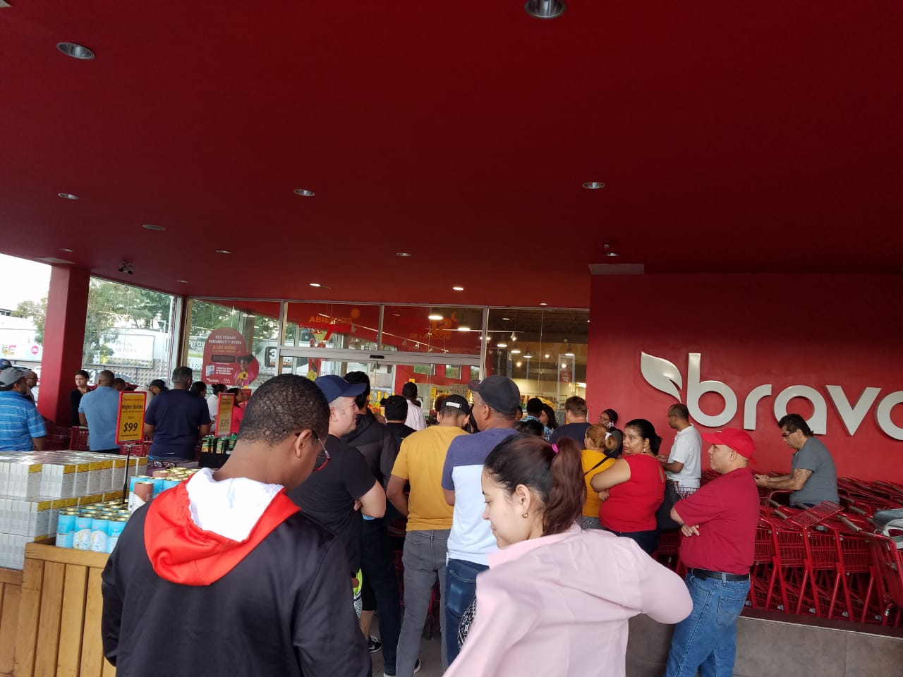 Reportes recibidos por este medio indican que en Supermercados como el Bravo ya a las 6:30 de la mañana de este sábado habían personas esperando que abriera sus puertas.