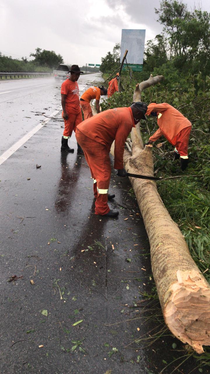 Asimismo, brigadas del Programa de Mantenimiento Vial y del Programa de Mantenimiento de Carreteras participan en labores de retiro de ramas de árboles y escombros, así como en control de inundaciones en las regiones del Cibao Norte y Cibao Sur de la autopista Duarte, así como en la autopista Las Américas.