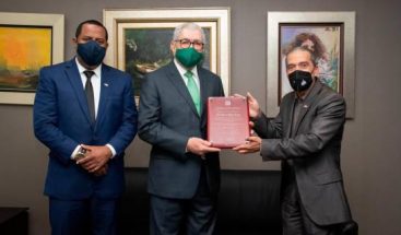 Juan Pablo Uribe, Presidente de la CPEP, Juan Alberto Michel, Director Ejecutivo de Proyectos y Actividades de la Comisión y Merlin de la Cruz Coordinadora de Eventos entregaron la placa a Tejada en su despacho de Diario Libre.