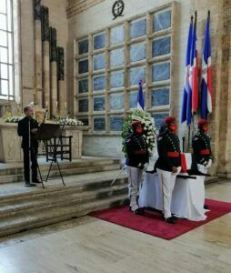 Santo Domingo.- Durante el acto solemne de exaltación del héroe nacional Gregorio Urbano Gilbert al Panteón de la Patria, el presidente de la Comisión Permanente de Efemérides Patrias (CPEP), Juan Pablo Uribe resaltó los méritos cívicos y patrióticos del homenajeado y que lo hacen merecedor de ese recinto sagrado, como lo consigna el decreto No 8-21 del presidente Luis Abinader.