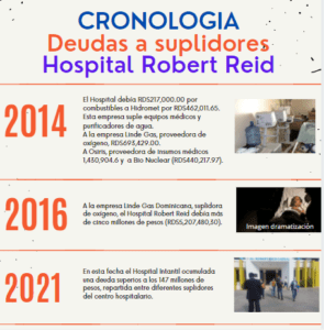 En marzo de 2014, el centro médico acumulaba una deuda de RD$17,227,992.96. En noviembre de 2016 el Hospital Robert Reid Cabral tenía una deuda acumulada de RD$49,973,291.88 con algunos proveedores, pero de forma particular, la deuda con Promese Call llegaba a RD$98,088,357.88 y con Macrotech de RD$8,323,400.90 sumaban un total de RD$RD$156,385,050.66.