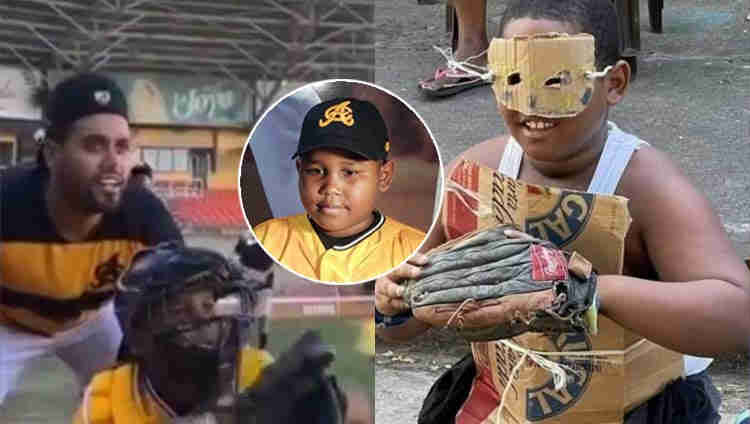 Francisco Peña cumple sueños a niño catcher de cartón