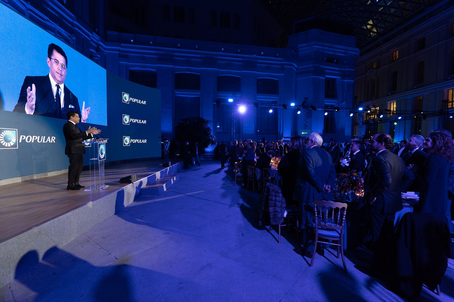 Madrid, España. – El Banco Popular Dominicano celebró su tradicional encuentro con empresarios turísticos, inversionistas y autoridades gubernamentales presentes en la feria internacional de turismo FITUR 2022, con una cena de gala celebrada en la espectacular Galería de Cristal del Palacio de Cibeles.