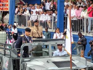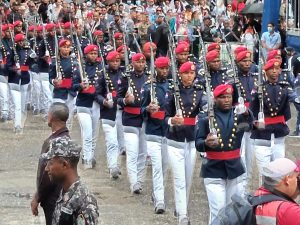 Al concluir él Te Deum se dirigieron a la avenida Las Carreras, donde se rindieron los honores militares de estilo al presidente de la República, Luis Abinader como autoridad suprema de las Fuerzas Armadas y la Policía Nacional a su llegada a la tarima.