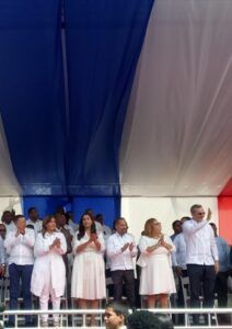 Luego se procedió al depósito de ofrenda floral a los héroes de la Batalla de Azua por parte del Presidente de la República Luis Abinader, quien recibió los honores militares de estilo como autoridad suprema de las Fuerzas Armadas y la Policía Nacional a su llegada a la tarima.
