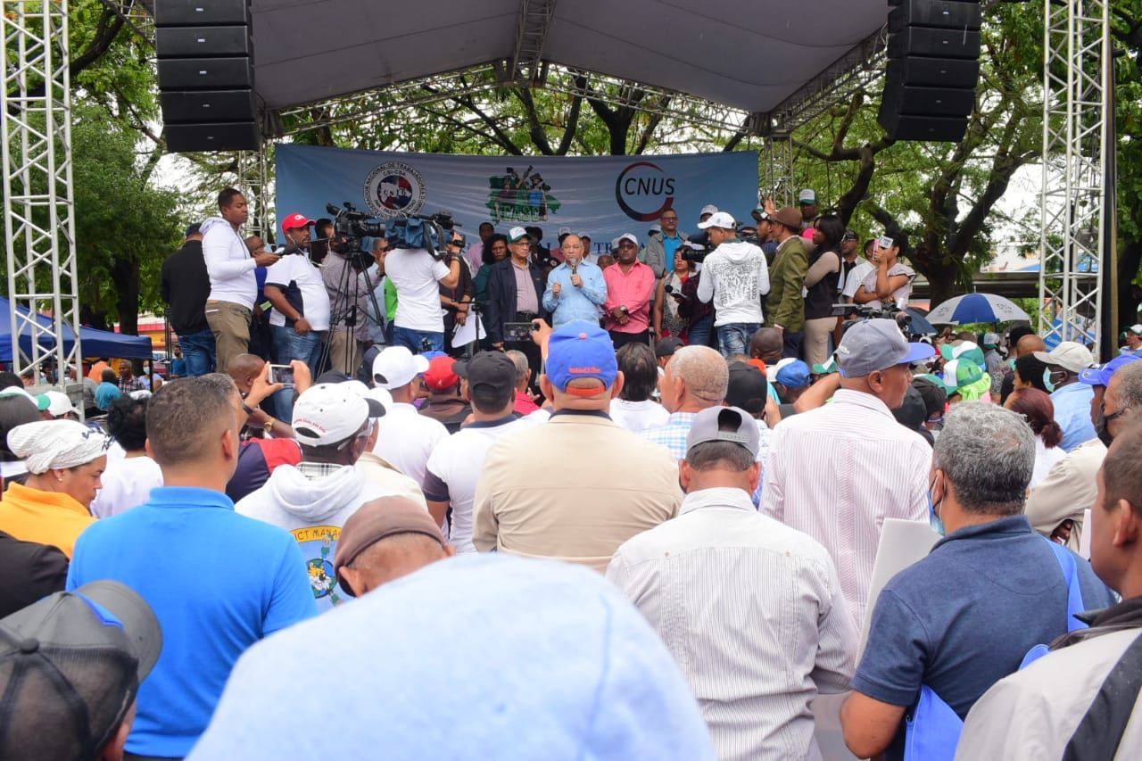 Los líderes de la Confederación Autónoma Sindical Clasista (CASC), de la Confederación Nacional de Unidad Sindical (CNUS), y de la Confederación Nacional de Trabajadores Dominicanos (CNTD), se pronunciaron al conmemoraron el Día Internacional del Trabajo, con un mitin en la plazoleta Mauricio Báez, del Distrito Nacional.
