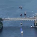 Se podían ver innumerables vehículos de primeros auxilios estacionados a lo largo del puente, mientras varios botes estaban en el agua, y helicópteros de la policía estatal y la Guardia Costera sobrevolaban.