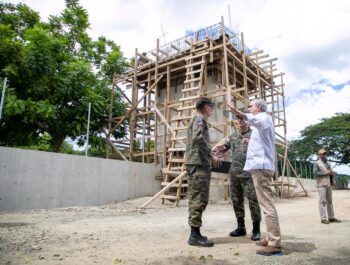 En el recorrido, el director de Planes y Operaciones del Ministerio de Defensa, general de brigada Rafael Antonio Núñez Veloz, ofreció explicaciones acerca de los avances en la construcción de dicha verja.