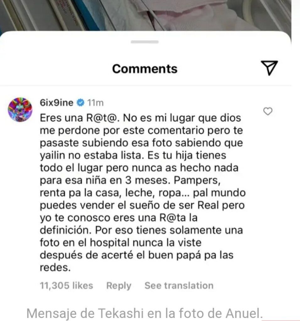 “Eres una rata”, escribió Tekashi. “No es mi lugar, que Dios me perdone por este comentario, pero te pasaste subiendo esa foto sabiendo que Yailin no estaba lista”.
