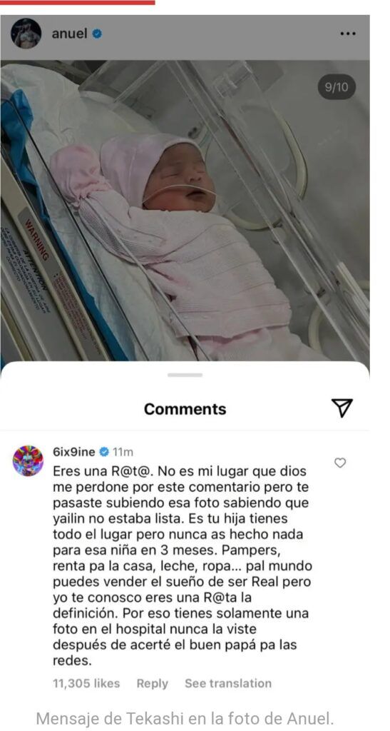 La publicación de la foto de la niña ha desatado un enfrentamiento en las redes sociales entre Anuel y Tekashi, quien salió en defensa de Yailin dejando un comentario en la publicación de Anuel en Instagram.