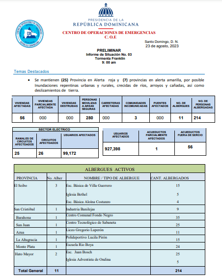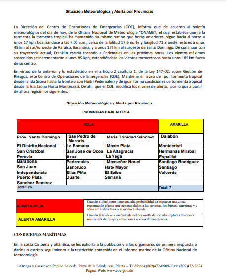 Santo Domingo, R.D. – El Gobierno dominicano en la tarde de este domingo llamó a la normalización de las actividades laborales y educativas en todo el país, exceptuando a las provincias que aún continúan en alerta roja como Barahona, Pedernales, Independencia y Bahoruco. En estas cuatro provincias se mantienen suspendidas las labores y la docencia en […]
